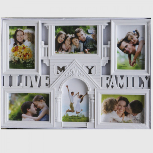 рамка 10*15 пластик Колаж (6 рамок, I LOVE MY FAMILY)(біла)(24) 35*50 см