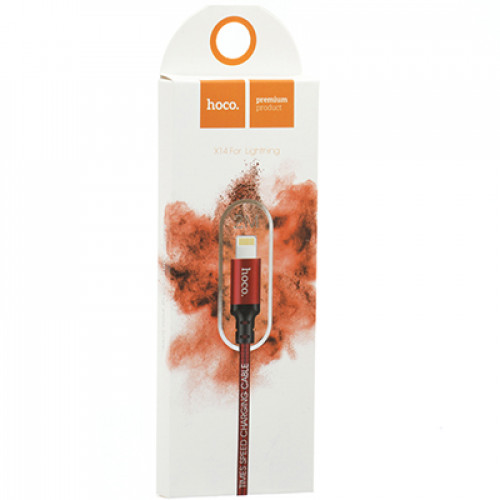 Кабель Hoco X14 Times Speed Lightning to USB 2.0 AF, 2m, (тканевая оплетка)(коробка) black-red