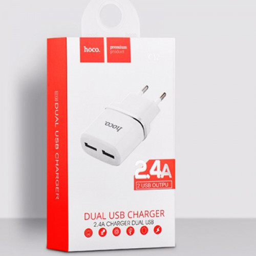 МЗП Hoco C12 (2,4 A, 2* USB. 12W)(коробка) white